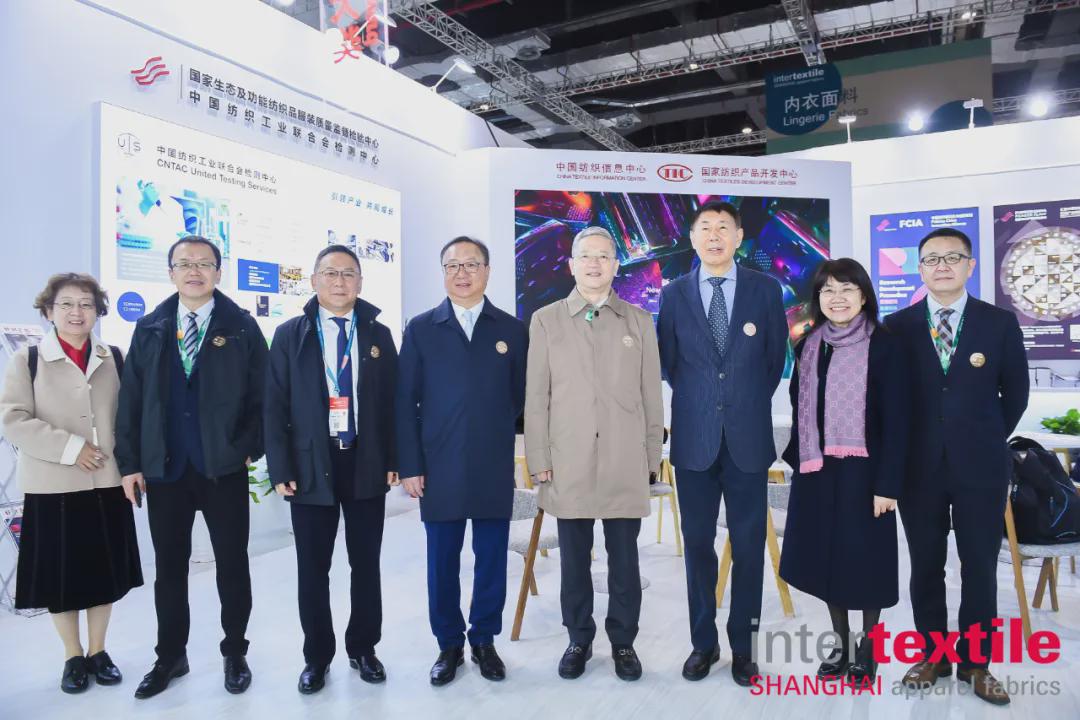 在上午的首場參觀中,孫瑞哲、夏令敏、徐迎新、李陵申、張延愷一行在展會主辦方負責人的陪同下參觀了展會。一行人首先走訪了位于7.1號館的中國紡織面料流行趨勢、國家紡織產品開發中心等展位,在這兩個集萃了最新流行趨勢與優質面料的展位里,富含東方文化意蘊和先進技術水平的多款面料,給嘉賓們留下深刻印象。