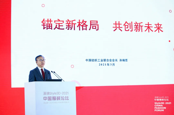 中國紡織工業聯合會會長孫瑞哲在以“錨定新格局 共創新未來”為題的主旨演講中指出, 雙循環新發展格局下,超大規模的市場優勢正在轉化為品牌發展的巨大空間,品牌企業的合力創新,讓中國經濟的新動能更加澎湃。新基建大潮下,一輪全新的產業發展范式正悄然醞釀,新品牌、新產品、新業態、新模式不斷涌現,持續引領和創造新的消費需求。他從數字共同體、文化價值鏈、未來話語權三個維度,探討了中國服裝產業的破局新方向和求解新思路。 孫瑞哲認為,數字經濟已經成為引領未來經濟發展的重要力量,圍繞數據資源、基礎設施、產業生態的競爭日漸激烈,并指出技術是變革的基石;人是推動變革的核心。 在文化價值鏈方面,孫瑞哲認為在服裝產業的發展語境下,不管是大眾文化、高端文化還是精英文化,都需要對中華本土時尚的文脈本身,兼具理性與感性的認知,并且通過這種具有深度和溫度的“自知”,推動中國服裝產業對自身文化基因的體認、識別和強化。這其中,首先是文化自信的前提是文化自知;其次是文化自知的指向在于產業自立。