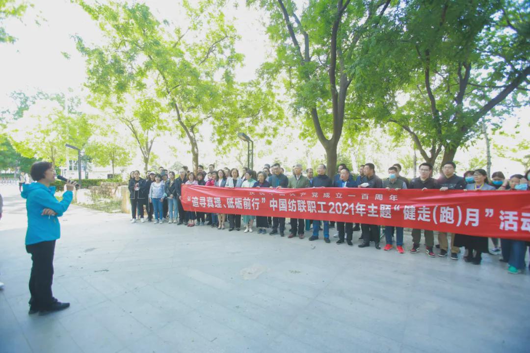 追尋真理、砥礪前行 5月8日上午,“追尋真理、砥礪前行”中國紡聯(lián)職工2021年慶祝建黨100周年主題“健走(跑)月”活動——中國紡聯(lián)第八屆職工主題健走(跑)活動啟動儀式在中國紡聯(lián)朝陽門辦公區(qū)北側(cè)健身公園內(nèi)順利舉行。
