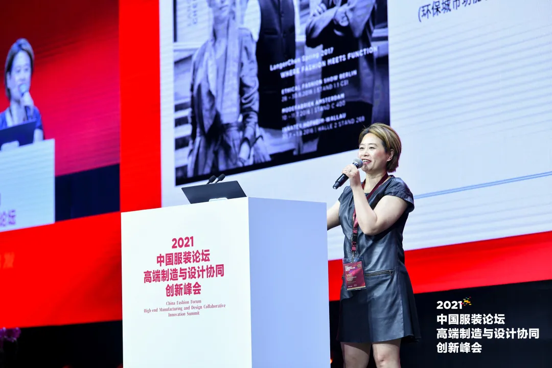 LangerChen創(chuàng)始人及總經(jīng)理陳君梅結(jié)合自身經(jīng)歷及品牌發(fā)展,暢談了對“時(shí)尚品牌可持續(xù)發(fā)展”主題的理解。她表示,雖然大家或是從事不同行業(yè),或是身處時(shí)尚行業(yè)的不同鏈條,或是對公司管理和運(yùn)營有不同的見解,但可持續(xù)顯然是未來發(fā)展的唯一出路。 這也意味著品牌生產(chǎn)基地的可持續(xù)性尤為重要。在她看來,一個(gè)可持續(xù)時(shí)尚高端生產(chǎn)基地的六大關(guān)鍵點(diǎn)是,具有安居樂業(yè)理念的對制造業(yè)有耐心的區(qū)域政府,有毅力有核心競爭力的品牌主理人及運(yùn)營團(tuán)隊(duì),熟練且忠誠的中層專業(yè)人士,熟練且勤奮的一線員工,配套的高端2次加工基地,配套的誠信及品質(zhì)理念為導(dǎo)向的教育培訓(xùn)基地。