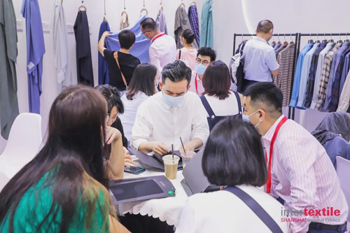 本屆展會上,重量級展團及明星企業悉數到場,參展企業都拿出了看家本領,把前沿科技成果、創新產品悉數呈現。中國盛澤展團攜手116家企業強勢出擊;南山智尚從健康防護、多功能商旅、戶外運動、高品質、女裝等一系列產品中凸顯自身面料服裝一體化優勢;江蘇丹毛推出毛混紡面料創新,帶來完全可生物降解的聚酯纖維,其安全性達到嬰幼兒級別標準,擁有手感棉柔、抗起毛球和常溫染色等性能;浙江金晟作為天竹纖維西裝面料開發生產基地,持續強化專精特新,產品源于自然、回歸自然;三毛集團的金銀絲段彩女裝襯衫料、漸變襯衫料、雅賽爾條格襯衫料、涼感襯衫料等極具科技感,同時保證舒適環保……孫瑞哲一行對企業的創新求變表示認可,并倡導要根據市場消費需求從產品設計、品牌風格、運營模式等方面進行轉型。