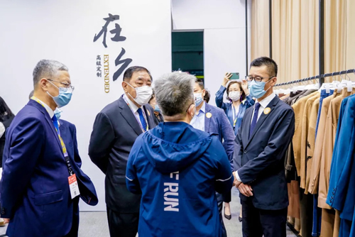 在CHIC上時尚變得觸手可及,在COLORO展位,領導一行詳細了解了COLORO這款中國自己的顏色標準,不僅包含了3000多種色彩,更通過數字化實現了設計、生產、營銷到消費者的標準化閉環對接;逆思維展位的原創設計定向開發方案、四時三味的創新旗袍、榕臣的新中式服裝無不讓大家駐足;更有恒萊服飾的創意羊絨,打破傳統毛衣概念,羊絨填充服、針織三件套、雙面尼外觀羊絨大衣……使領導們長時間停留,詳細了解品牌的創新設計、制造工藝與銷售情況。