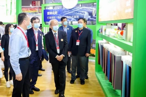 隨后杜鈺洲一行來到吉林化纖展位,吉林化纖集團副總經理岳福升詳細介紹了天竹、人造絲、腈綸、碳纖維四大系列的產品研發生產情況及產業鏈下游應用情況。領導們對吉林化纖追求環保可持續發展理念,創新突破取得的成績,及天竹聯盟產業鏈一體化創新發展情況給予高度肯定。