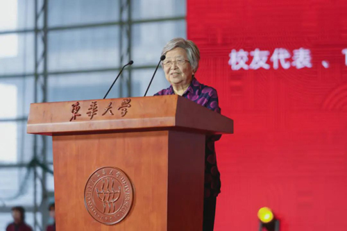 覃小紅作為教師代表發言 東華大學紡織學院副院長覃小紅作為教師代表發言。從2001年五十周年校慶時入校求學、后留校任教至今,覃小紅老師來到東華大學已經二十年。她感慨道,“這里有德高望重、言傳身教的好老師,有敏而好學、德才兼備的好學生,還有世界領先、行業頂尖的一流紡織學科,一流的理念、一流的教育、一流的環境……我將繼續發揚‘崇德博學、礪志尚實’的校訓精神,為東華再創輝煌作出新的貢獻。”