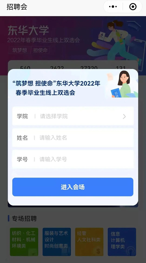 ![]() 她強調(diào),目前兩校區(qū)學生就業(yè)服務均正常開展,畢業(yè)生就業(yè)手續(xù)線上線下方式都可辦理,各學院對學生的就業(yè)需求要做到“應辦盡辦”,把工作做到學生心坎上。此外東華大學學生就業(yè)服務中心迅速啟動“穩(wěn)就業(yè)”工作預案,兩校區(qū)線下手續(xù)辦理正常開展的同時,全面開啟線上咨詢輔導、就業(yè)創(chuàng)業(yè)服務,“筑夢想、擔使命”春季畢業(yè)生線上雙選會于3月15日開始,分時段舉辦多場次,春季企業(yè)空中宣講會持續(xù)進行中。