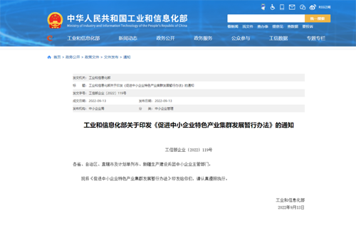 9月13日,工信部發(fā)布《促進(jìn)中小企業(yè)特色產(chǎn)業(yè)集群發(fā)展暫行辦法》,提出“十四五”期間,在全國范圍內(nèi)認(rèn)定200個左右集群,引導(dǎo)和支持地方培育一批省級集群。
