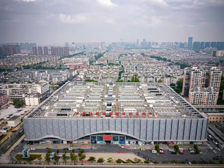 ![]() 中國輕紡城國際面料采購中心(無人機照片)。新華社記者江漢攝