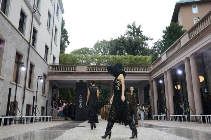 2023年9月19日,這些被選中的柯橋面料,經中國和意大利設計師之手做成時裝,出現在世界四大時裝周之一——米蘭時裝周的“柯橋日”秀場。