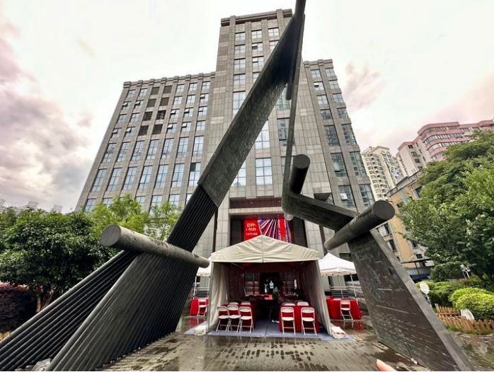![]() 申新九廠原址上改建的上海紡織博物館,門前矗立著紡車雕塑。新華每日電訊記者徐歐露攝