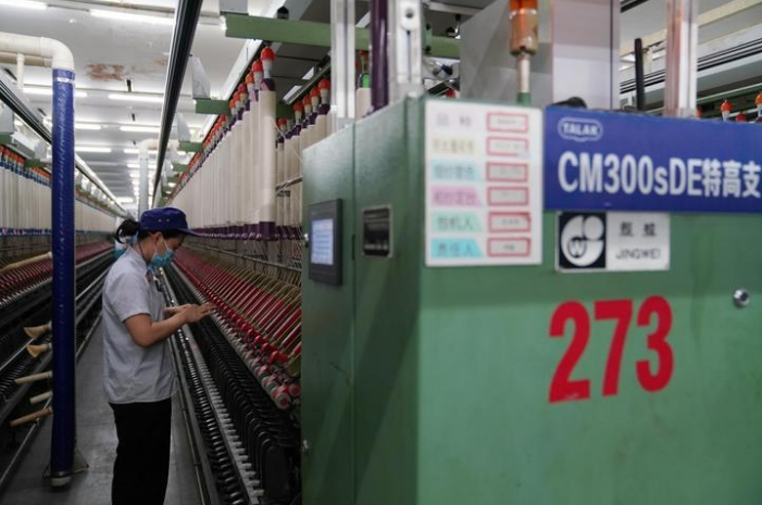 ![]() 2023年5月8日,在無錫一棉紡織集團長江車間,工人在特高支紗生產線上作業。該生產線可批量生產達到世界領先水平的300支純棉紗線。新華社記者馬寧攝