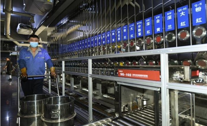 ![]() 2023年10月17日,浙江鴻大印染集團有限公司的工作人員在染料全自動稱料車間工作。新華社記者翁忻旸攝
