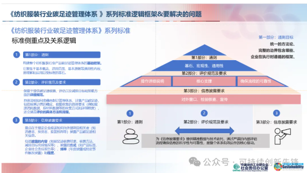 ![]() 中國紡聯(lián)可持續(xù)發(fā)展助理研究員胡雪睿對標(biāo)準(zhǔn)的預(yù)期規(guī)劃、編制思路及重點(diǎn)問題進(jìn)行了詳細(xì)解讀。紡織服裝行業(yè)產(chǎn)品碳足跡管理體系是一個(gè)系列標(biāo)準(zhǔn)主要包括通則、評價(jià)規(guī)范及要求、信息披露三大部分。其中,通則作為標(biāo)準(zhǔn)的基石,明確了基本概念和適用范圍;評價(jià)規(guī)范及要求對碳足跡統(tǒng)計(jì)方法和流程進(jìn)行詳細(xì)規(guī)范;而信息披露部分則重點(diǎn)對碳足跡數(shù)據(jù)的披露內(nèi)容、形式和頻率進(jìn)行統(tǒng)一要求,是標(biāo)準(zhǔn)對外透明化的窗口。該標(biāo)準(zhǔn)的制定在產(chǎn)品碳足跡上參考了國際標(biāo)準(zhǔn)ISO 14067,在管理體系上結(jié)合了國家能源管理體系和環(huán)境管理體系的相關(guān)要求,以保證標(biāo)準(zhǔn)的科學(xué)性、適用性和可操作性,推動(dòng)紡織行業(yè)建立更加規(guī)范和高效的碳足跡管理系統(tǒng)。