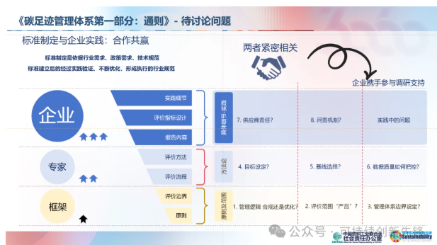 在隨后開展的深度研討環(huán)節(jié),來自行業(yè)協(xié)會(huì)、研究機(jī)構(gòu)及企業(yè)的專家代表圍繞標(biāo)準(zhǔn)的核心內(nèi)容、實(shí)施路徑及可能面臨的挑戰(zhàn)展開了熱烈討論,并對草案提出了建設(shè)性建議,包括管理邏輯、標(biāo)準(zhǔn)名稱、管理體系邊界設(shè)定、管理目標(biāo)設(shè)定、供應(yīng)鏈管理、數(shù)據(jù)質(zhì)量要求等八大問題。這一環(huán)節(jié)為標(biāo)準(zhǔn)的進(jìn)一步優(yōu)化奠定了堅(jiān)實(shí)基礎(chǔ),從實(shí)際操作到未來推廣提出了諸多建設(shè)性意見,進(jìn)一步推動(dòng)了標(biāo)準(zhǔn)內(nèi)容的完善,也為行業(yè)凝聚了更多共識和力量。