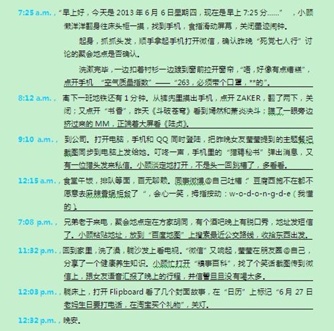 這是一個城市青年人最普通的工作日。 當昨天我們還在討論移動互聯、討論中國市場上智能手機的占有率、討論社會化營銷、討論APP對企業營銷的沖擊和應對的時候;你的消費者、你的用戶,已經搶在前頭早融入了新的生活方式。 消無聲息,又自然而然。他們比你更早體驗了競爭對手開發的app、更早搜羅了在app store上出現新玩意兒。他們誠然不是那個會告訴你下一步該怎么做的人,但他們可以是那個推著你往前走的人。 下面,就讓我們看看都市青年們在移動互聯和APP的世界里都怎么玩兒的?有哪些習慣也許會對你帶來更多啟發? 本次零點研究咨詢集團下屬零點e動營銷發起的《青年群體移動互聯APP行為研究》,旨在通過線上問卷的調查,了解青年群體的手機App使用行為特征,洞察青年群體的價值觀、消費行為等趨勢變化。本次調查于2013年4月進行,共征集來自全國1-4線城市,1,973名18-32歲的80、90后青年網友的意見。