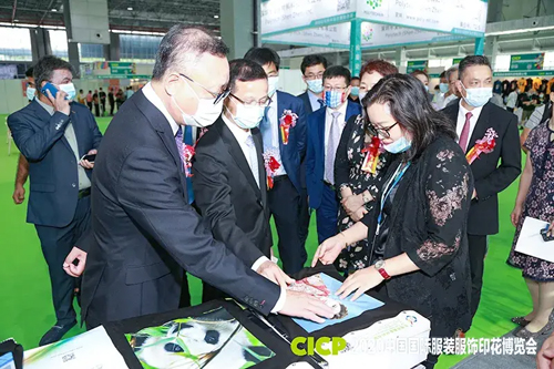 中國紡織工業聯合會會長孫瑞哲,東莞市濱海灣新區黨工委書記、管委會主任、虎門鎮黨委書記羅斌,中國印染行業協會會長陳志華,中國印染行業協會副會長、服裝服飾印花分會會長李瑞萍,廣東省服裝服飾行業協會執行會長劉岳屏,東莞市虎門鎮副鎮長黃沛民,中國服裝協會副秘書長趙雅彬等有關領導和嘉賓,以及來自全國各地服裝服飾印花產業鏈上下游企業、各相關地方行業協會、專業市場和產業集群,以及科研機構、知名服裝品牌和大專院校等代表共300多人出席了開幕活動。 ![]() 在盛大的開幕式結束后,中國紡織工業聯合會會長孫瑞哲等領導一行來到展館,先后走訪了廣州愛發、如皋天元、廣東碧宏、深圳墨庫、東莞中天、鄭州鴻盛、深圳寶麗、東莞彩韻、廣東偉航以及服裝服飾印花精品作品展區等展位,詳細詢問了參展企業疫情下的生產研發等情況,并同企業就目前印花行業最新技術、市場推廣以及發展現狀等進行了深入交流。領導們鼓勵企業,要繼續加大自主研發和原創設計,加快產業協同創新,不斷賦予印花產業“科技、時尚、綠色”新內涵,不斷彰顯印花在服裝產業鏈中獨特價值和時尚引領。 整合多方資源優勢 協同創新共贏未來 ![]() 博覽會開幕式,由中國印染行業協會副會長、服裝服飾印花分會會長李瑞萍主持。