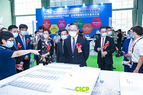 作為展會上的“網紅產品”,雙面打印的絲巾格外引人注目。在海捷數碼技術(蘇州)有限公司展位上,雙面打印的高端絲巾披肩、服裝服飾及各種文化創意產品吸引了無數人的駐足和拍照。據總經理陳小恩介紹,這些“網紅”產品均來自公司自主研發的HJ-DF1的織物雙面數碼噴墨印花機,這款“神器”不僅可以雙面印花,還高效節能,具有廢墨和飛沫自動收集系統,有效的提高了打印精細度,甚至在打印中基本可以做到無人值守,目前該設備深受高端市場青睞。 “想不到印花水平都這么高了,這樣的先進工藝應該大力推廣。”在服裝服飾印花精品展區,中國印染行業協會服裝印花分會專家委員會主任委員黃國光向領導們詳細地介紹了本次參展的最新工藝和技術,特別是說到首次亮相的“棉織物數碼噴墨活性染料印花免上漿免汽蒸免水洗清潔生產工藝”,采用該工藝不產生廢水時,孫瑞哲忍不住點贊。 ![]()