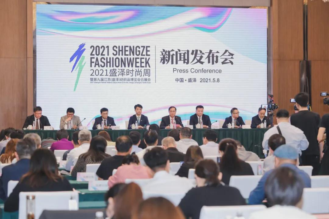 5月8日,2021盛澤時尚周暨第九屆江蘇(盛澤)紡織品博覽會云展會新聞發布會在盛澤舉行,發布了本次活動日程及亮點。吳江區副區長、吳江高新區黨工委書記、盛澤鎮黨委書記、中國東方絲綢市場黨工委書記沈春榮,吳江高新區管委會副主任、中國東方絲綢市場管委會主任張建華,盛澤鎮黨委委員、黨政辦公室主任王君,中國東方絲綢市場管理辦公室主任陸子平,中國服裝協會常務副會長楊金純,中國紡織信息中心副主任李波,中國服裝設計師協會專職副主席謝方明,江蘇省紡織工業協會會長韓平,上海時尚產業發展中心理事長邵峰,北京《瑞麗》雜志社有限公司董事長陳業進等領導和嘉賓,以及來自人民日報、新華社、光明日報、經濟日報、《紡織服裝周刊》、第一財經日報、解放日報、東方衛視、新華日報、瑞麗傳媒、蘇州日報等40多家媒體單位的代表出席活動。