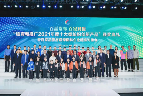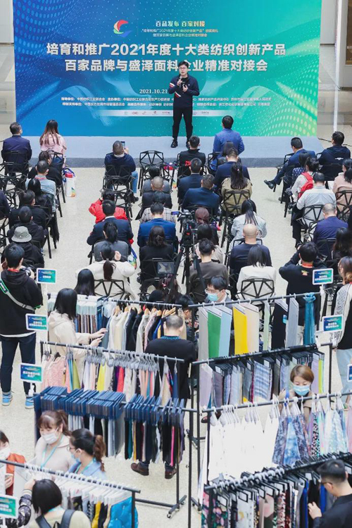 10月21日,在第十屆江蘇(盛澤)紡織品博覽會盛大舉行之際,“百品發布·百家對接”——“培育和推廣2021年度十大類紡織創新產品”頒獎典禮暨百家品牌與盛澤面料企業精準對接會在江蘇省蘇州市吳江區盛澤鎮舉辦。