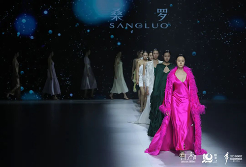 桑羅SANGLUO真絲女裝趨勢發布主題名為“絲縷”。本屆發布會上,桑羅化身一位來自東方的氣質女性,在不同的人生階段,有不同的生活狀態和品位。作為一名新時代女性,她自信自如,從內至外散發著獨特的魅力,她既有鋒芒也有柔光,濃墨重彩俯瞰繁華,靜待滿天星辰。青山流水,草木發芽,她聆聽自然的聲音,舒適、寧靜,不失浪漫與精致,她永遠不畏挑戰,勇于打破常規,溫柔且有力量。