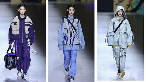 發(fā)布會上,模特身著“新生”系列服飾閃亮登臺,整體造型時尚又不乏民族味道,戶外休閑感酷味十足,贏得觀眾一片稱贊。