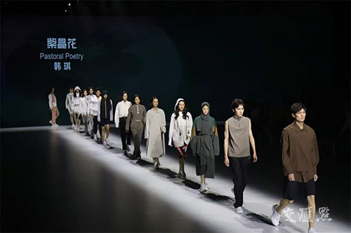 盛澤本土面料品牌紫晶花與中國十佳時裝設計師韓琪共同帶來主題為“新生”的系列發(fā)布,既有民族味道的花紋和配色,又有時尚潮流的休閑元素和戶外功能的款式結構,主要采用時尚新潮且具有功能性的防曬面料、可降解材料等,極具環(huán)保意義。