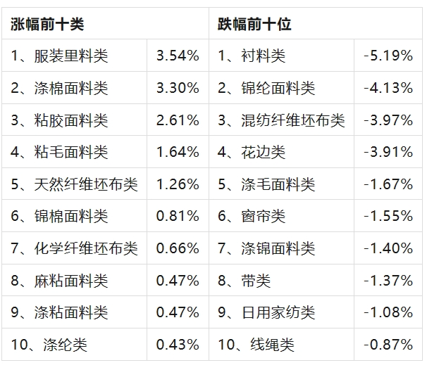 三、服裝面料環(huán)比微升,價(jià)格指數(shù)環(huán)比微漲