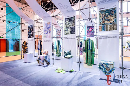 在頒獎盛典前夕,本次大賽潮流炫酷的的專屬靜態(tài)展區(qū)就已經吸引了一批又一批的博覽會觀眾駐足觀賞。作為大賽步入第五個年頭的特別展區(qū),300平米的實用面積劃分為主形象區(qū)、入圍作品展示區(qū),影像回顧區(qū),歷屆獲獎作品展示及衍生產品展區(qū),成果對接洽談區(qū)五大區(qū)域。大賽連續(xù)五年成功舉辦的成果在第十三屆江蘇(盛澤)紡織品博覽會暨蘇州灣時尚周榮耀綻放,亦將持續(xù)推動實現(xiàn)大賽成果轉化與落地。