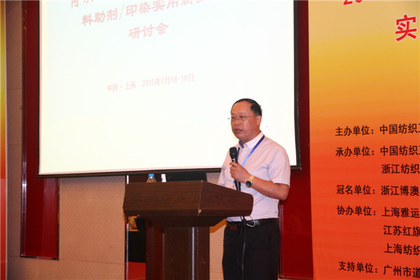 浙江博澳染料工業(yè)有限公司副總經(jīng)理吳禮富對本次研討會的召開給予了充分的肯定 開幕式上,浙江博澳染料工業(yè)有限公司副總經(jīng)理吳禮富對本次研討會的召開給予了充分的肯定,他認(rèn)為,創(chuàng)新驅(qū)動、提質(zhì)增效已成為行業(yè)發(fā)展的主旋律,行業(yè)發(fā)展的機遇和市場空間不可估量,后期要在新技術(shù)、新產(chǎn)品的創(chuàng)新研發(fā)中抓住機遇,積極迎接挑戰(zhàn)。
