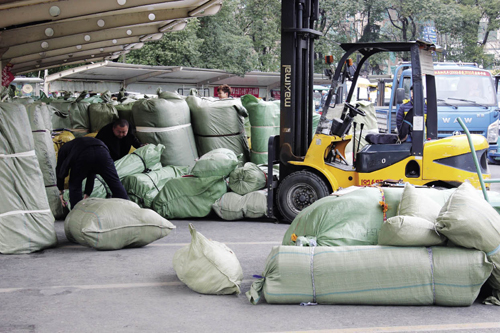 中國輕紡城“復市”第一天,物流區已經堆滿了各色各樣即將發往世界各地的布匹,井然有序。記者在現場看到,還未到傍晚發貨的高峰時間段,物流打包師傅已經忙得不可開交,有些實在來不及的甚至由經營戶自己上陣打包發貨。