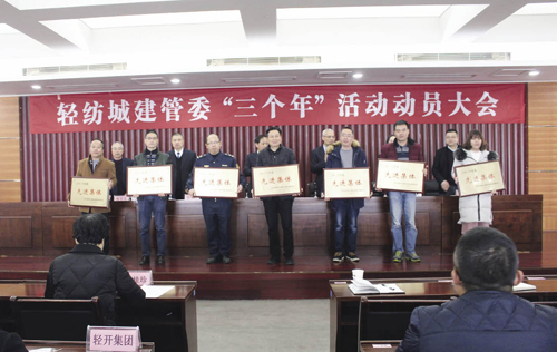 中國輕紡城建管委“三個年”活動動員大會明確2017年工作思路 本刊記者-許益萍 文/攝 今年是中國輕紡城“三次創業”的全面深化之年。這一年,中國輕紡城建設管理委員會(以下簡稱輕紡城建管委)將認真貫徹柯橋區黨代會精神、區“八大戰役”動員會的要求,緊緊圍繞“三個率先”、“三個柯橋”的發展目標,加快推進輕紡城“三次創業”,堅持一條主線、大力實施“三個年”活動、重點推進五項工作任務,以“柯橋情懷”跑出紡城“加速度”。 2月9日,輕紡城建管委“三個年”活動動員大會在柯橋區創意大廈召開。出席此次會議的有輕紡城建管委機關及直屬企業全體干部職工,派駐機構全體工作人員,輕紡城經營公司、輕紡城股份公司中層以上干部,輕紡城派出所、司法所代表,以及受表彰的先進集體代表和個人。會議表彰了2016年度委級先進集體和先進個人以及2016年輕紡城建管委取得的區級及以上集體榮譽,柯橋區委常委、常務副區長諸劍明,輕紡城建管委黨工委書記、主任王彪在會上作重要講話。