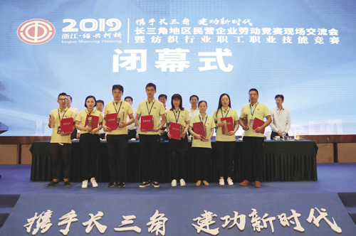 四省市總工會聯手舉辦現場交流及職工技能競賽 本刊記者-王利/文 鄒偉鋒/攝 長三角一體化是我國五大區域發展戰略體系的重要組成部分,在國家現代化建設大局和全方位開放格局中具有舉足輕重的戰略地位。自去年11月習近平總書記在首屆中國國際進口博覽會上提出“支持長江三角洲區域一體化發展并上升為國家戰略”以來,長三角地區四省市總工會圍繞中心大局,樹立“一體化”意識和“一盤棋”思想,形成更加緊密的區域發展共同體,更好引領長江經濟帶和華東地區發展,更好服務國家發展大局。 9月28日,伴隨著《歌唱祖國》的嘹亮歌聲,“長三角地區民營企業勞動競賽現場交流會暨紡織行業職工職業技能競賽”在紹興柯橋拉開序幕。本次活動以“攜手長三角、建功新時代”為主題,由上海、江蘇、浙江、安徽四省市總工會共同發起,由浙江省總工會主辦,紹興市總工會、柯橋區總工會承辦,中國輕紡城建設管理委員會、柯橋區教育體育局、凡特思集團有限公司協辦。 浙江省人大常委會副主任、總工會主席史濟錫,副省長王文序,全國總工會勞動和經濟工作部部長王曉峰,紹興市委書記馬衛光,柯橋區委書記沈志江,四省市總工會,中國財貿輕紡煙草工會,中國勞動關系學院,紹興市、柯橋區黨委政府及總工會等單位和部門相關負責人出席開幕式。馬衛光代表紹興市委市政府致歡迎辭,史濟錫代表四省市總工會致辭。省總工會黨組書記、副主席張才方主持開幕式。現場,中國勞動關系學院長三角學院正式落地簽約。 活動持續兩天,先后舉行了主旨大會、工匠主題沙龍,開展了服裝制作、印染打樣、紡織面料設計(電腦花樣)三項技能競賽,并組織與會代表參觀了第二屆世界布商大會活動現場和柯橋紡博會。本次系列活動中,紡織行業大放異彩,作為我國國民經濟的傳統支柱產業和重要的民生產業,在紡織新時代的背景下,聚焦“科技、時尚、綠色”新定位,綻放出蓬勃生機。