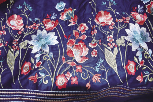 與鵬千紡織相仿,紹興柯橋探花紡織有限公司也在多年生產雪紡印花和真絲縐面料的積淀上涉足漢服面料。“公司主打的漢服刺繡面料在傳統的真絲縐、歐根紗等輕薄材質上融入原創刺繡花型,增加了創意與美感,很受漢服商喜歡。”探花紡織總經理錢明印表示,該類刺繡面料工藝難度大,需要生產機器與技巧的多重保障,在市場上并不多見,因而近兩年公司這一領域的業務增長較快,基本上保持了每年20%~40%的增長速度。