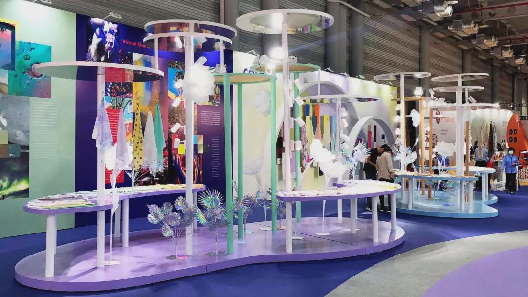 第四主題“幻·造化”中,復(fù)古暖色調(diào)與虛幻冷冽的光感色彩一道渲染出歡樂避世和虛擬現(xiàn)實氛圍。一系列帶有變形幾何、數(shù)字電波效果、數(shù)碼花卉紋樣的圖案以提花、印花或復(fù)合工藝的形式大量出現(xiàn);賽博風(fēng)格、自由無序的混搭風(fēng)格碰撞出的奢華的復(fù)古未來風(fēng)格也在展示面料完美展現(xiàn)。未來科技主義金屬外觀面料與抗菌抑菌等功能性搭配是非常重要的關(guān)注要點。 為了方便參展觀眾查看相關(guān)信息,每款展示面料均將通過自身植入的人工“芯片”(面料產(chǎn)品詳細(xì)信息),結(jié)合由中國紡織信息中心傾力研發(fā)的人工智能看展工具,以別具一格的智能化體驗方式,為廣大參展觀眾提供流行色彩、設(shè)計方向、面料采購等多元服務(wù),有效促成產(chǎn)業(yè)鏈上下游商務(wù)對接,更為柯橋紡企構(gòu)建便捷的專業(yè)對接渠道。