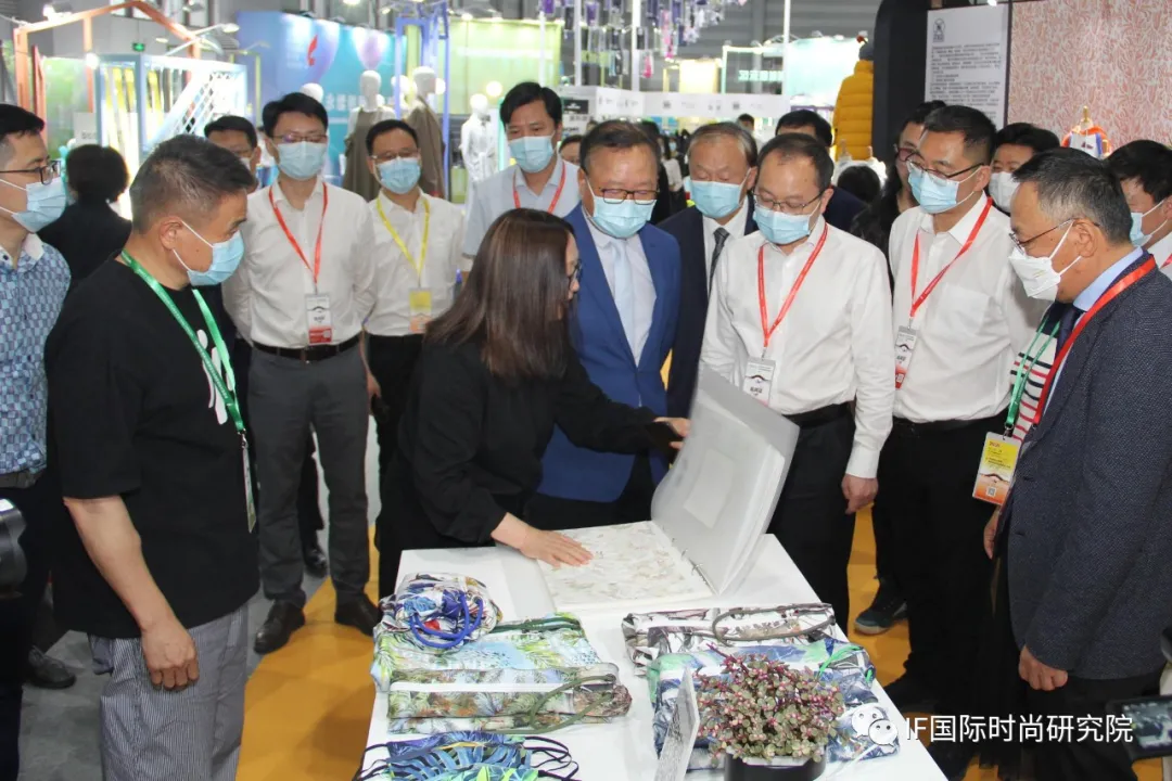 展覽開幕后,中國紡織工業聯合會會長孫瑞哲、中共紹興市柯橋區委書記趙如浪一行在中國美術學院吳海燕教授的陪同下,了解了設計趨勢研究的體系與內容,探討了產學研融合的多樣化發展路徑,對于高校與產業基地實現雙贏目標。