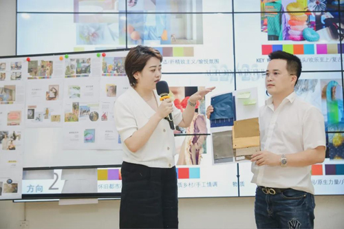 ![]() 在2022/23秋冬紡織面料產品開發實戰培訓中,各小組在王旭和彭麗樺的指導下,結合流行趨勢進行產品企劃實操。