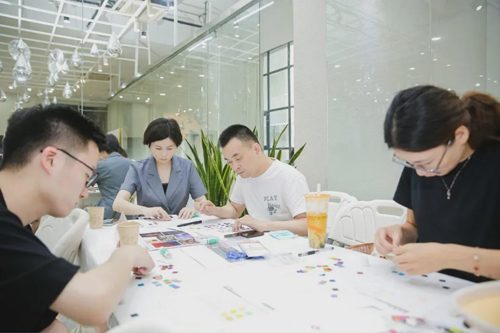 課上,本次的培訓專家還基于前期對企業情況及需求的調研,為企業帶來了針對性的實戰訓練。來自產業鏈上下游的企業代表分別組成實踐小組,積極參與討論與練習,踴躍分享了在面料產品開發方向與應用領域的新思考以及在色彩表達、色彩搭配方面的新體驗。