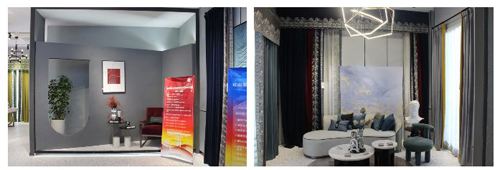 走在展館內,隨處可見傳統工藝與現代制造、民族元素與前沿時尚在窗簾布藝產品上的碰撞。來到新居樂布藝有限公司的展位上,中歐風、波西米亞風、輕奢極簡風等各種風格的窗簾布藝產品比比皆是,展位上的營業員都忙著招待前來問詢的客商。作為一家傳統窗簾布藝企業的年輕接班人,新居樂負責人洪光政有著更為敏銳的市場洞察力,逐年加大線上業務占比。此次參展,新居樂還創新推出“抖音打卡活動”,參與該活動一方面能給予客商一定的優惠,另一方面也能通過現代人喜歡的方式進行宣傳推廣。