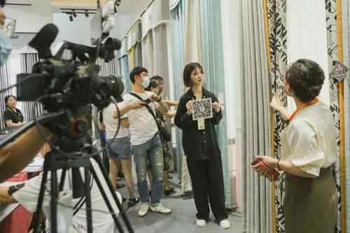 在伊方布業展位上,直播團隊正通過介紹窗簾產品的材質、克重、親膚性等內容,與線上采購商熱烈互動。公司負責人王紹昔表示,因為疫情的助推作用,這兩年公司加大了線上業務比重。“我們公司之前也一直在私域平臺進行針對性的直播,反響很好,此次也感謝展會主辦方的安排,通過實體展會+線上直播引流的方式,幫助我們進一步打響知名度。”據悉,此次參展公司共帶來包括現代、輕奢、新中式、簡歐等9個系列,200多個品種的新品。“展會現場反響很好,今天一上午就成交近200單,相信這次展會我們又會迎來一個新的突破。”
