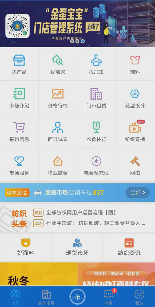 ![]() 為幫助經營戶提升門店管理效率,拓展線上銷售渠道,快速精準匹配供采雙方,作為“數(shù)字輕紡城”二期建設重要成果之一的“金蠶寶寶門店管理系統(tǒng)”在去年9月正式上線,已有5100家經營戶注冊使用。系統(tǒng)以微信小程序為載體,分為供應商版和采購商版,其中供應商版包含樣品管理、產品發(fā)布、花樣保護、產品銷售、庫存管理等功能;采購商版包含瀏覽、收藏和咨詢產品等功能。經營戶可以將門店分享到微信或者朋友圈,在一定程度上可有效打通公、私域流量,助力采供雙方實現(xiàn)面料交易數(shù)字化。