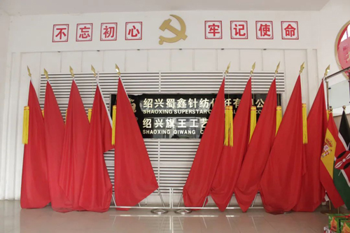 走進旗王所在工業園區,“百年旗王 萬年中華”幾個字格外耀眼,從一樓大廳到黃國興辦公室通道兩旁的墻上,貼滿了“不忘初心 牢記使命”、“誠信為本”、“品質在我手中 客戶在我心中”等標語,時刻提醒著員工們在國旗下工作的責任和使命。