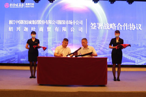 ![]() 浙江中國輕紡城集團股份有限公司服裝市場分公司與 紹興迦葉商貿有限公司簽署戰略合作協議。