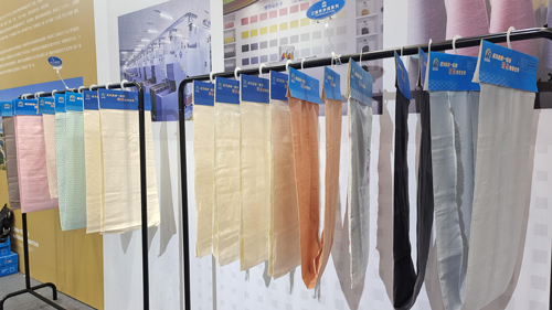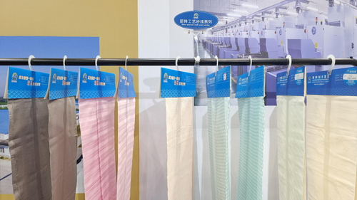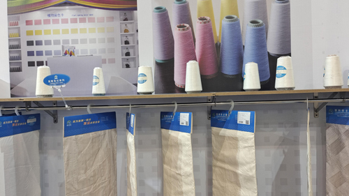 ![]() 近年來,終端消費者對可持續生活方式的向往,倒逼行業從紡織源頭重新思考。為呼應市場需求,本屆展會上,德州恒豐集團集中展出了抗菌抑菌、親膚護膚等大批功能新品,帶來了植物染纖維紗線系列、蛋白質和氨基酸的纖維紗線和面料系列、抑菌茯苓系列產品、抗菌珍珠仿羊絨面料等。