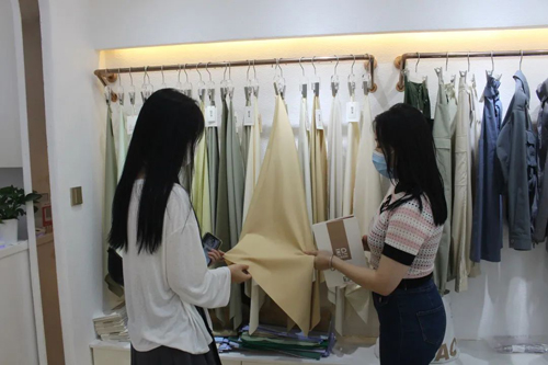 據介紹,詩蝶紡織主營各類冰麻絲、賓利絲等夏季面料,從纖維原料入手到染整、后處理等環節,都選用環保材料,盡可能保證每個環節實現可持續發展。趙平表示,“這也是符合當下消費市場需求的,無論是研發哪一種新品,舒適度、功能性都是目前企業的研發核心。”