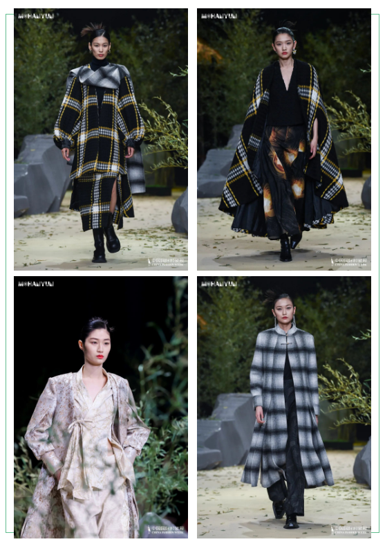 走進MoHanYun的秀場,氤氳繚繞夾雜著鳥鳴獸吠,來自遠古森林的朝露與泥土芬芳撲鼻而來,腳踩綿密松軟的嫩草,繞過神秘的水澤,置身一處秘境,似乎真需要佩戴迷谷,方可解惑。隱約可聞的現代節拍和迷離的電子稍可回神,設計師蘭天移步換景置幻遠古,又巧妙的鏈接了當代時尚心理。40套成衣,延續了品牌一貫低調致雅的風格,著眼于服裝肌理脈絡矜持的呈現性格,未曾堆砌結構的造型反而明晰了年輕的態度,化繁為簡的美學理念出于設計師對國學歷史關照的習慣,也直指當代迷幻青春的痛點。