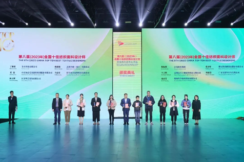 第八屆(2023年)全國十佳紡織面料設(shè)計師及培養(yǎng)先進(jìn)單位評選頒獎典禮上頒發(fā)了全國紡織面料設(shè)計“金柯橋”獎、全國十佳紡織面料設(shè)計師、全國優(yōu)秀紡織面料設(shè)計師、全國紡織面料設(shè)計師培養(yǎng)先進(jìn)單位等大獎。