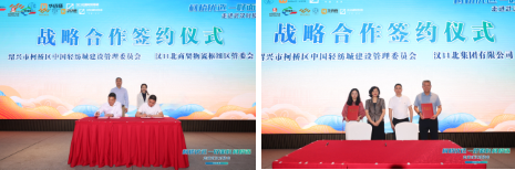 紹興市柯橋區中國輕紡城建設管理委員會分別與漢口北商貿物流樞紐區管委會、漢口北集團有限公司進行產業集群戰略合作簽約儀式。三方共同加深產業循環,充分整合三方優勢資源,通力打造產業集群互利協作、價值對接的高效平臺,促成合作共贏新模式。
