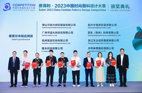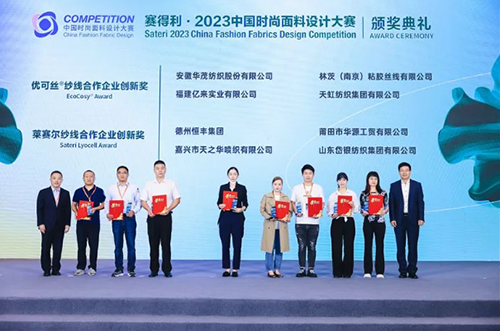 會(huì)上,“賽得利·2023中國(guó)時(shí)尚面料設(shè)計(jì)大賽”頒獎(jiǎng)典禮頒發(fā)了金獎(jiǎng)、銀獎(jiǎng)、銅獎(jiǎng)、時(shí)尚色彩獎(jiǎng)、科技創(chuàng)新獎(jiǎng)、萊賽爾市場(chǎng)應(yīng)用獎(jiǎng)、優(yōu)可絲?市場(chǎng)應(yīng)用獎(jiǎng)、優(yōu)可絲?紗線創(chuàng)新獎(jiǎng)和萊賽爾紗線創(chuàng)新獎(jiǎng)。