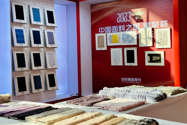此次“中國面料之星·星聚薈”走進柯橋紡博會,集結了700余款“2023中國面料之星調查活動"入圍及調查結果作品,展示區面積近200平方米。展出產品涵蓋男裝、女裝、運動休閑裝、內衣家居服、童裝五大品類,主題明確,各具特色,緊隨可持續潮流趨勢,拓寬面料應用場景,全面展示了面料的功能性、時尚性及多元性,成為展會上一道清新亮麗的風景。