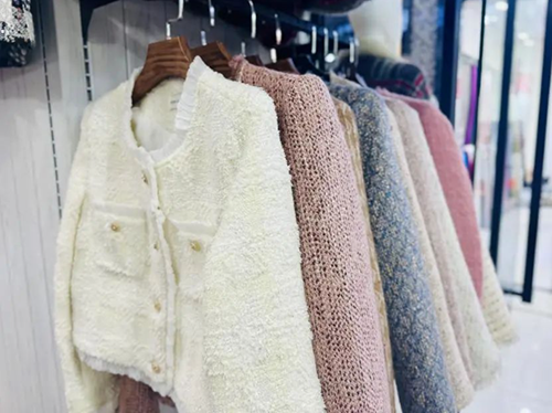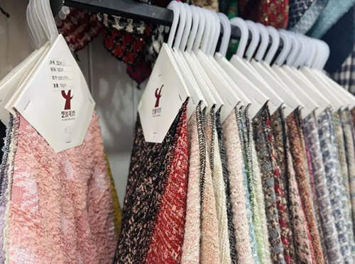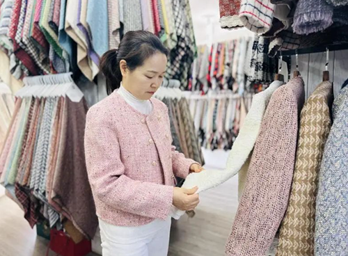 ![]() 位于輕紡城市場的藝鑫毛紡,深耕粗毛紡面料領域10余年,不斷在原料、風格以及后整理中的創(chuàng)新突破,做原創(chuàng)粗毛紡面料,生產差異化產品。走進藝鑫毛紡門店,一件件小香風外套整齊地陳列著,大多是“美拉德”色系,以棕色、大地色、卡其色、焦糖色和米黃色為主。據(jù)總經理吳海霞介紹,今年“美拉德”色系的運用賦予了粗毛紡新的生命,藝鑫毛紡開發(fā)的300款新產品中出現(xiàn)多個爆款,直接帶動柯橋整個毛紡市場的跟風模仿和火爆銷售。