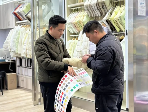 作為不可或缺的保暖利器,入冬以來,羽絨服成為消費者重點關注的保暖服飾,羽絨服面料的銷量迎來大幅增長。在中國輕紡城市場內,記者看到主營羽絨服面料的門店,客戶絡繹不絕,有不少正在選購中。